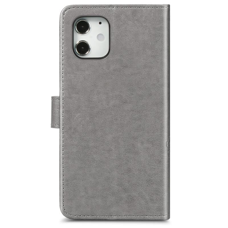 Θήκη δερμάτινη για iPhone 12 mini με σχέδιο τριφυλλιού, ανάγλυφη αγκράφα, προστασία κινητού, λουρί, θήκη για κάρτες, πορτοφόλι και λειτουργία βάσης (Χρυσορόδινο)