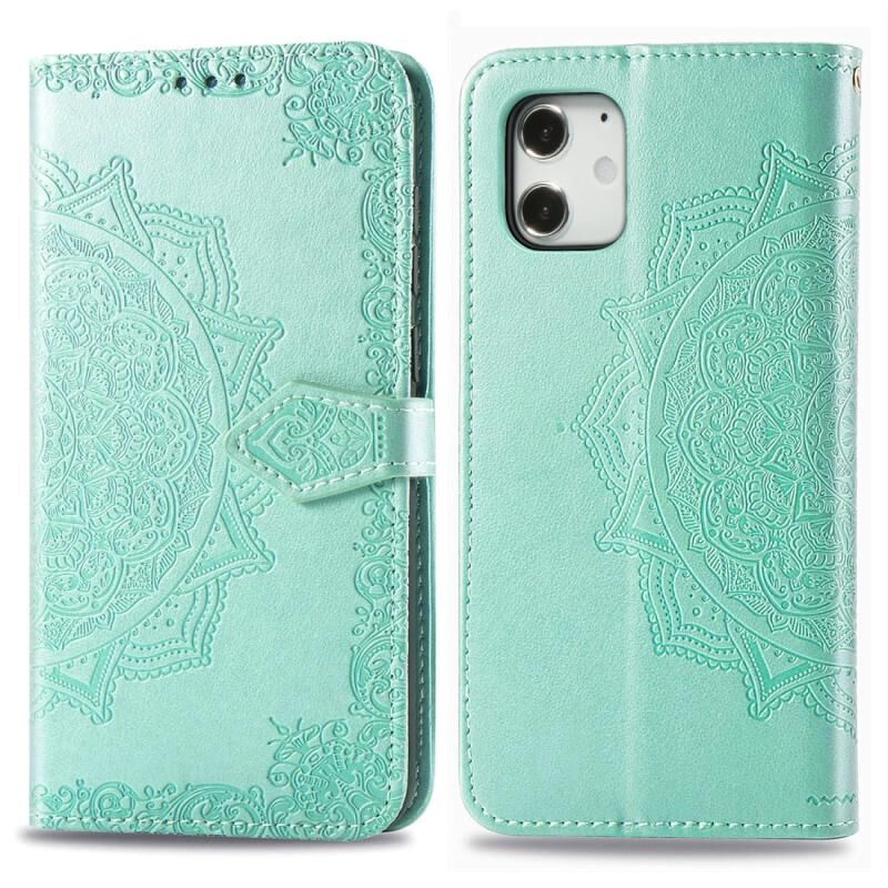 Θήκη δέρματος οριζόντιας αναδίπλωσης για iPhone 12 mini με σχέδιο Mandala σε ανάγλυφο, με βάση, θήκες καρτών, πορτοφόλι και λουρί (Χρυσό Ροζ)