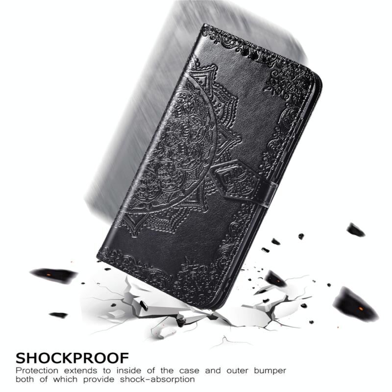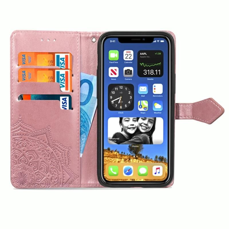Θήκη δέρματος οριζόντιας αναδίπλωσης για iPhone 12 mini με σχέδιο Mandala σε ανάγλυφο, με βάση, θήκες καρτών, πορτοφόλι και λουρί (Χρυσό Ροζ)