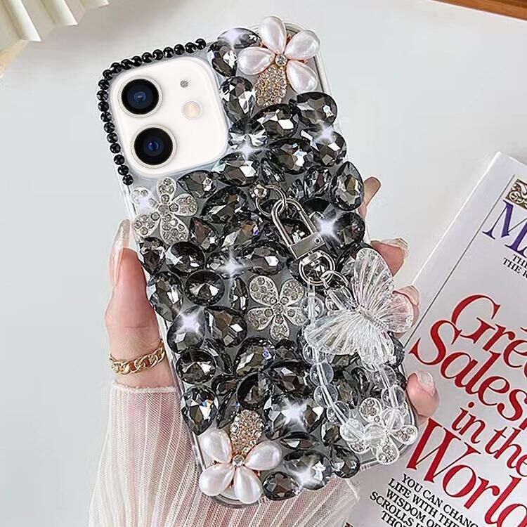For iPhone 12 mini Handmade Butterfly Diamond Inlay PC Phone Case(Black)