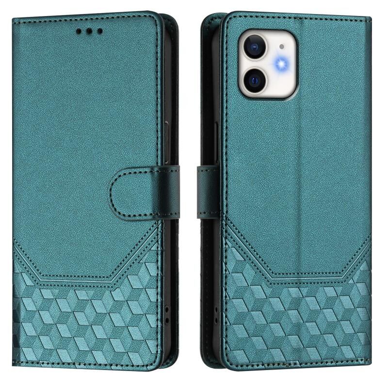For iPhone 12 mini Honeycomb Embossing RFID Leather Phone Case(Peacock Green)