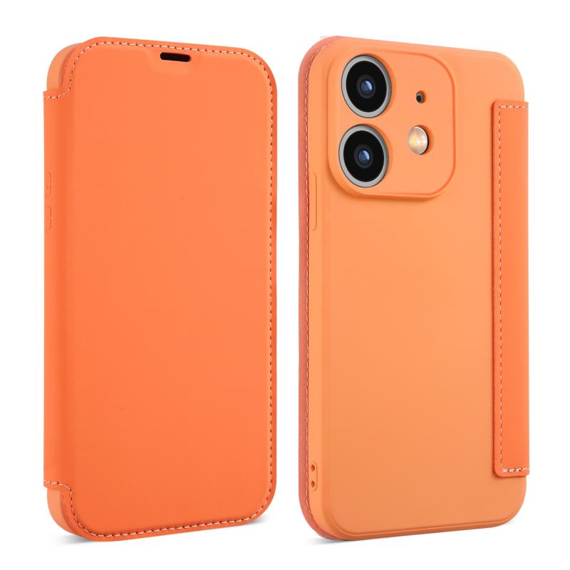 For iPhone 12 mini Imitate Liquid Skin Feel Leather Phone Case with Card Slots(Orange)