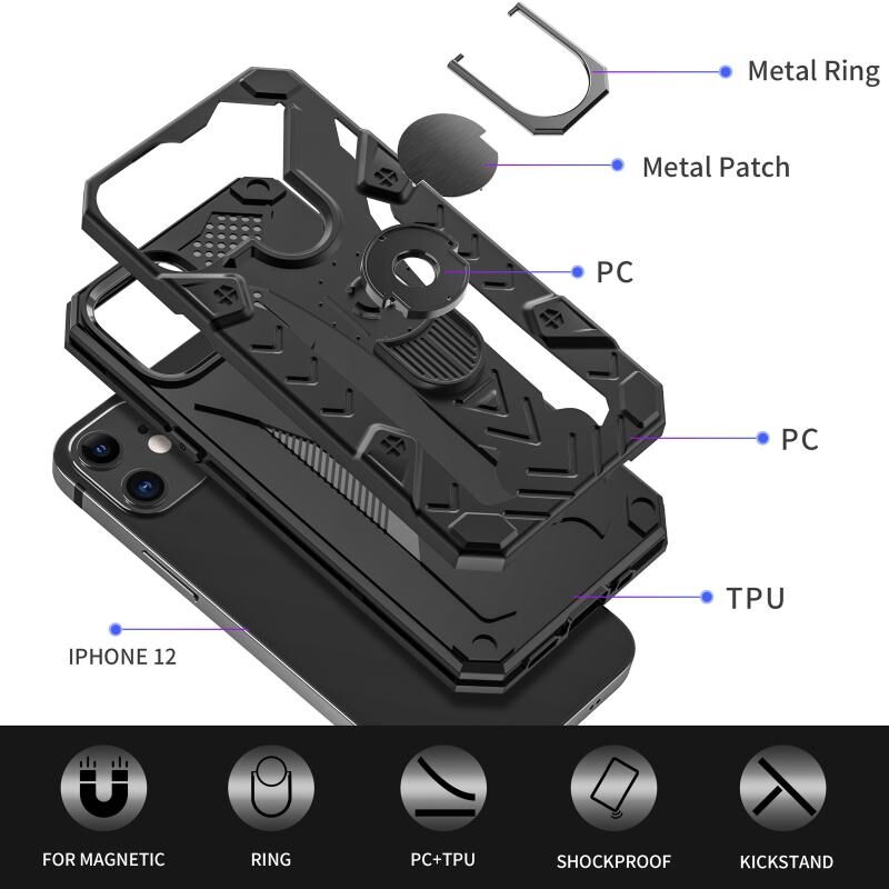 Θήκη κινητού τηλεφώνου 2 σε 1 PC + TPU για iPhone 12 mini Iron Knight Series με βάση δακτυλιδιού (Μαύρο)