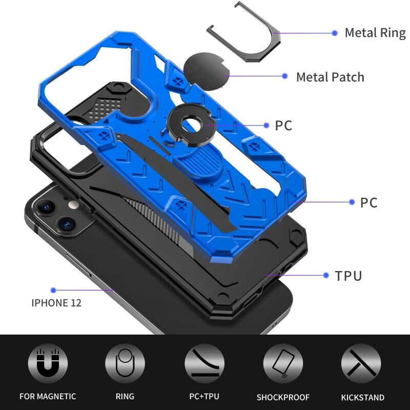 Θήκη κινητού τηλεφώνου 2 σε 1 PC + TPU για iPhone 12 mini Iron Knight Series με δακτύλιο στήριξης (Μπλε)