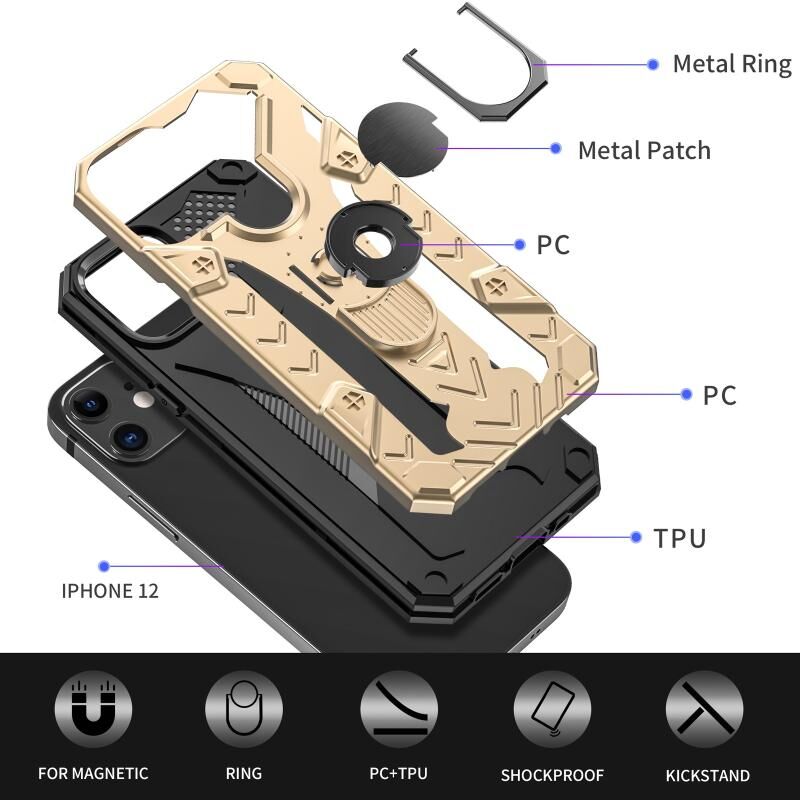 Θήκη κινητού τηλεφώνου 2 σε 1 PC + TPU για iPhone 12 mini Iron Knight Series με δακτύλιο στήριξης (Μπλε)