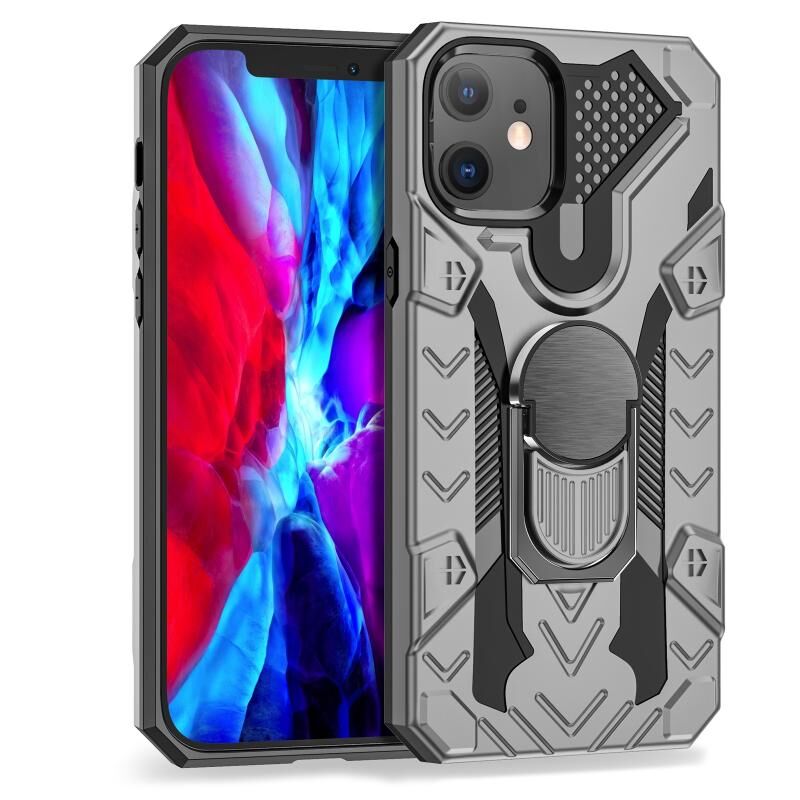 Θήκη κινητού τηλεφώνου 2 σε 1 PC + TPU για iPhone 12 mini Iron Knight Series με δακτύλιο στήριξης (Γκρι)