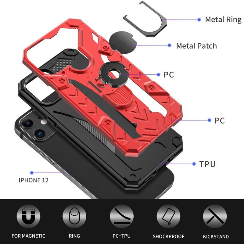 Θήκη κινητού τηλεφώνου 2 σε 1 PC + TPU για iPhone 12 mini Iron Knight Series με βάση δακτυλιδιού (Μαύρο)