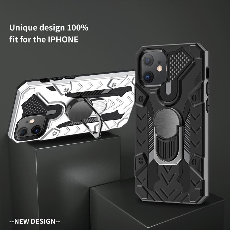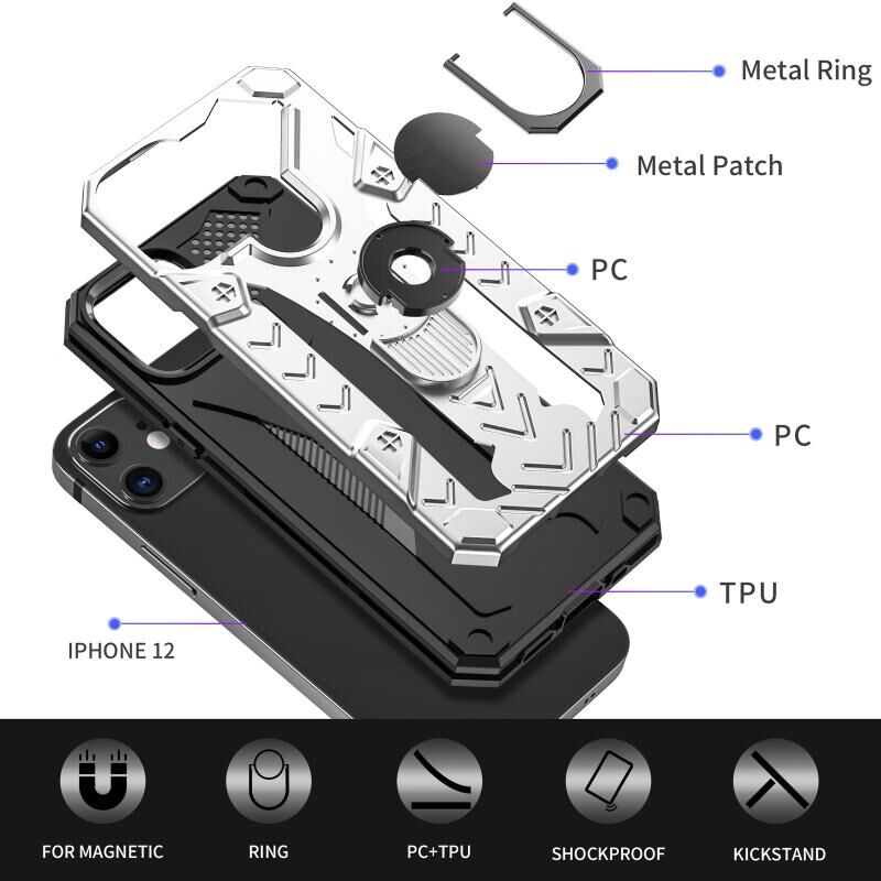 Θήκη κινητού τηλεφώνου 2 σε 1 PC + TPU για iPhone 12 mini Iron Knight Series με δακτύλιο στήριξης (Γκρι)