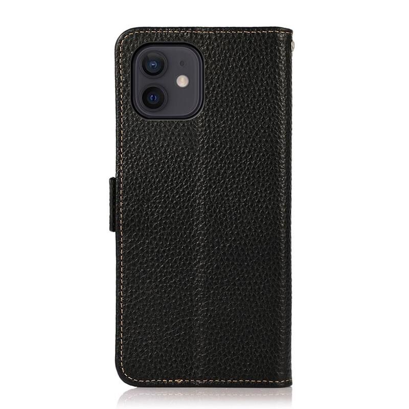 Θήκη KHAZNEH για iPhone 12 mini με πλευρικό μαγνητισμό, από γνήσιο δέρμα Litchi με προστασία RFID (Μαύρο)
