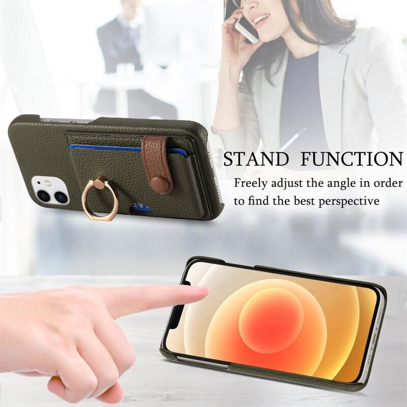 For iPhone 12 mini Litchi Leather Oil Edge Ring Card Back Phone Case(Green)