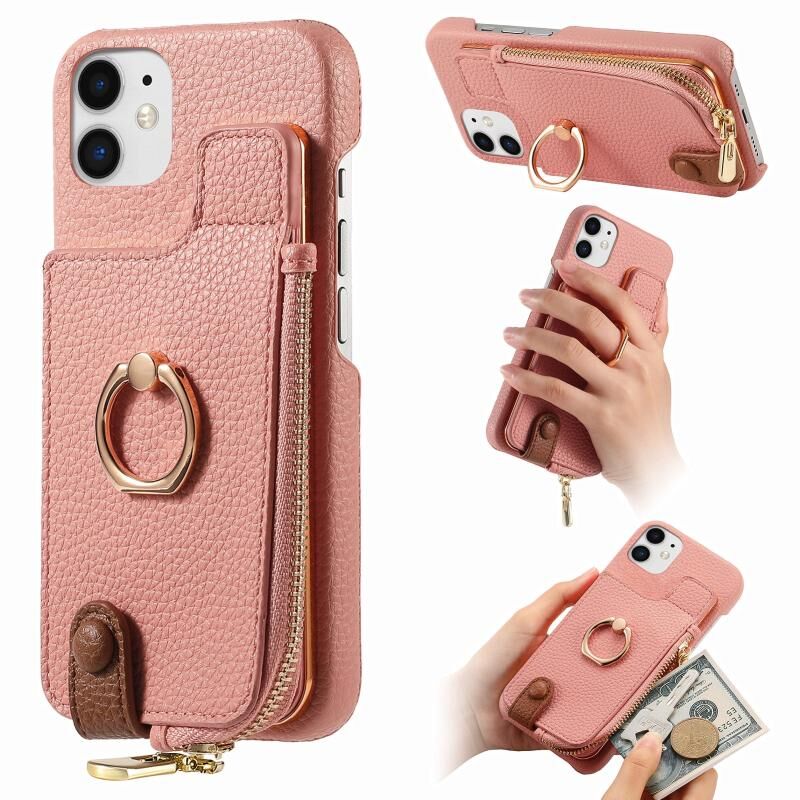 For iPhone 12 mini Litchi Leather Oil Edge Ring Zipper Wallet Back Phone Case(Pink)