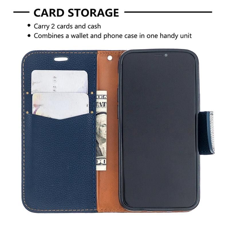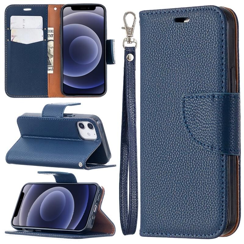 Θήκη δέρματος οριζόντιας αναδίπλωσης για iPhone 12 mini με υφή λυτσί, μονόχρωμη, με βάση στήριξης & θήκες καρτών & πορτοφόλι & κορδόνι (Μαύρο)