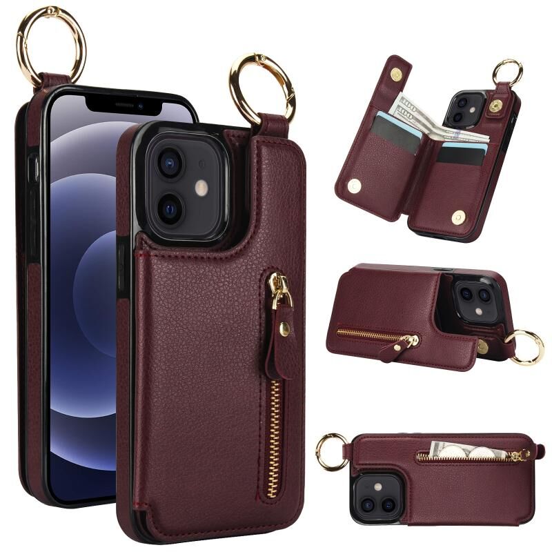 Για το iPhone 12 mini Litchi υφή φερμουάρ διπλή πόρπη κάρτα τσάντα υπόθεση τηλεφώνου (Maroon κόκκινο)