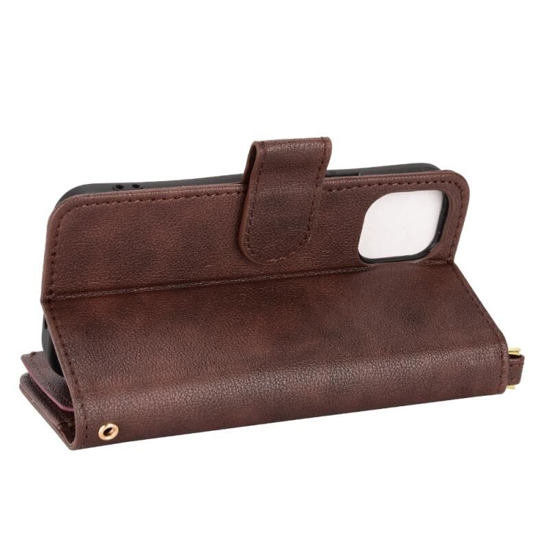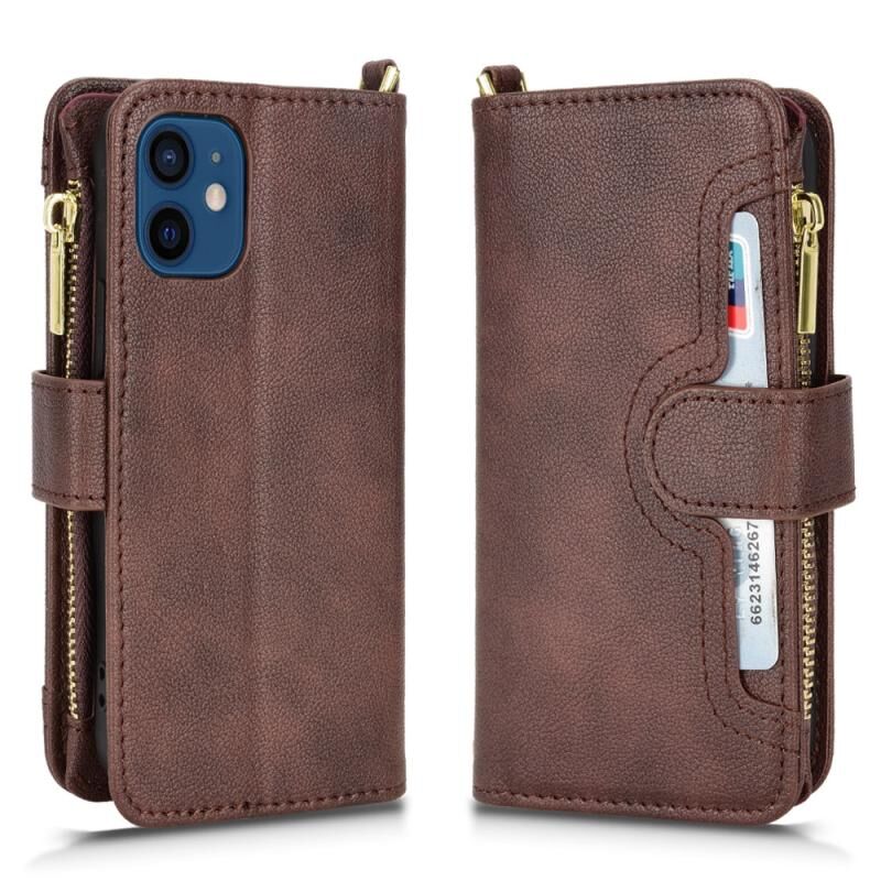 Θήκη τηλεφώνου από δέρμα με υφή λυτσί και φερμουάρ για iPhone 12 mini (Μαύρο)