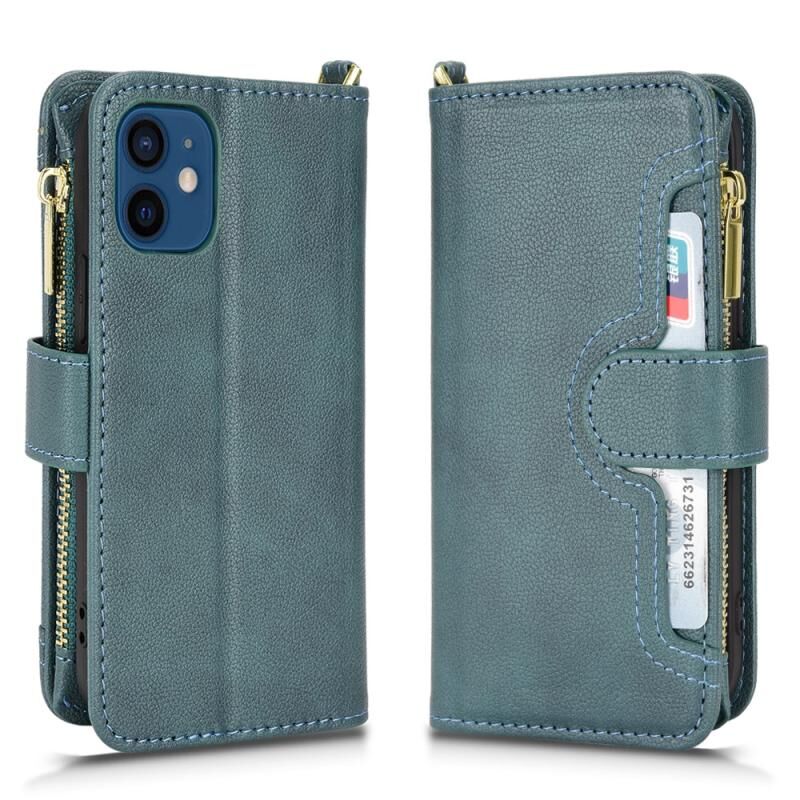 Θήκη τηλεφώνου από δέρμα με υφή λυτσί και φερμουάρ για iPhone 12 mini (Μαύρο)