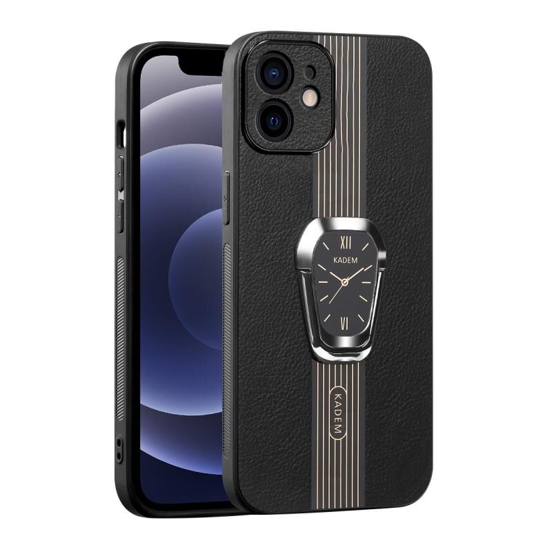 For iPhone 12 mini Magnetic Litchi Leather Back Phone Case with Holder(Black)