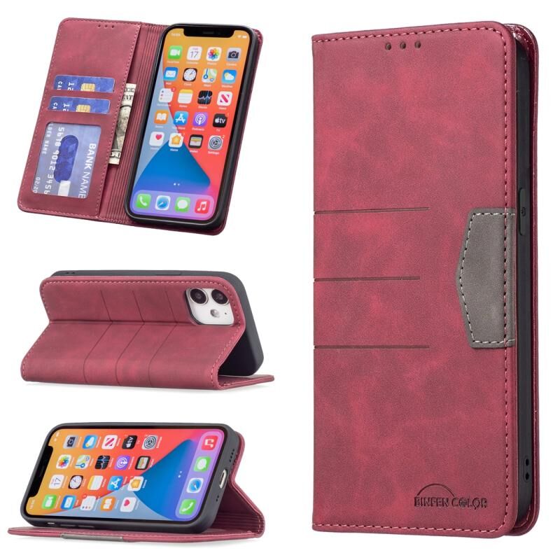 For iPhone 12 mini Magnetic Splicing Leather Phone Case (Red)