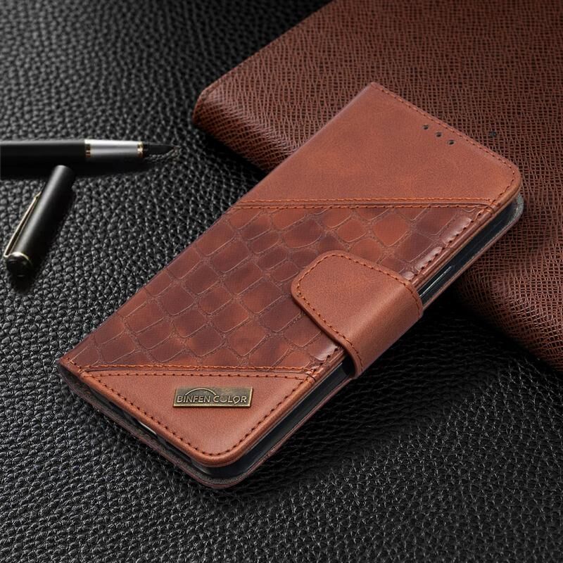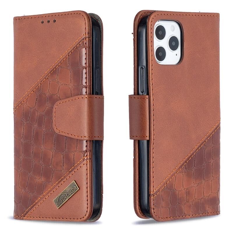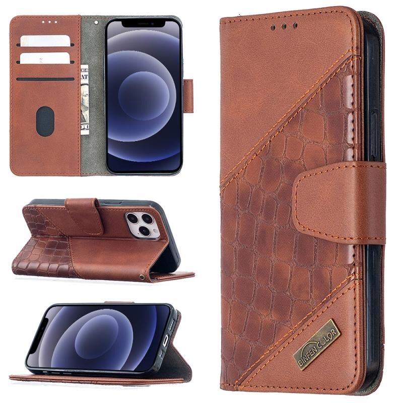Θήκη για iPhone 12 mini σε ταίριαστο χρώμα με υφή κροκόδειλου, οριζόντια αναδιπλούμενη από δερματίνη PU με πορτοφόλι & βάση & θήκες για κάρτες (Καφέ)