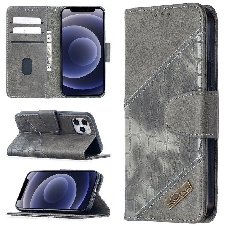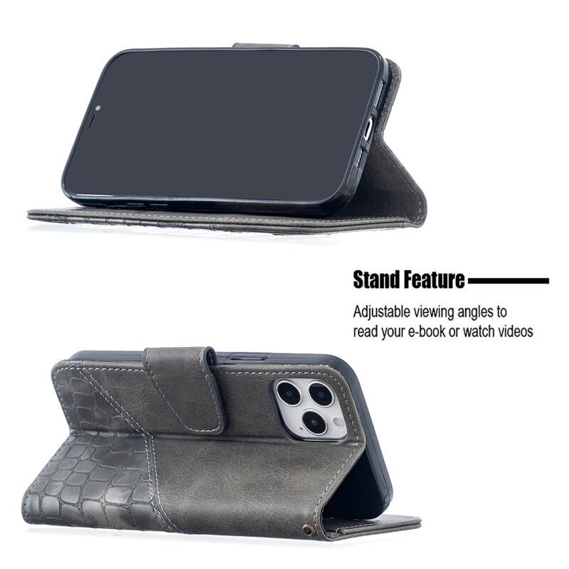 Θήκη για iPhone 12 mini σε ταίριαστο χρώμα με υφή κροκόδειλου, οριζόντια αναδιπλούμενη από δερματίνη PU με πορτοφόλι & βάση & θήκες για κάρτες (Καφέ)