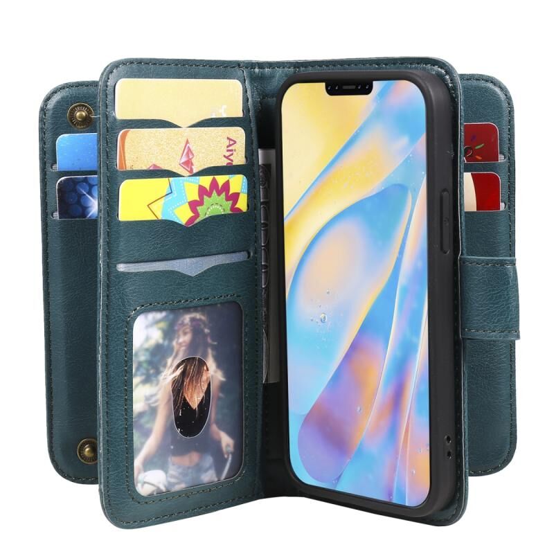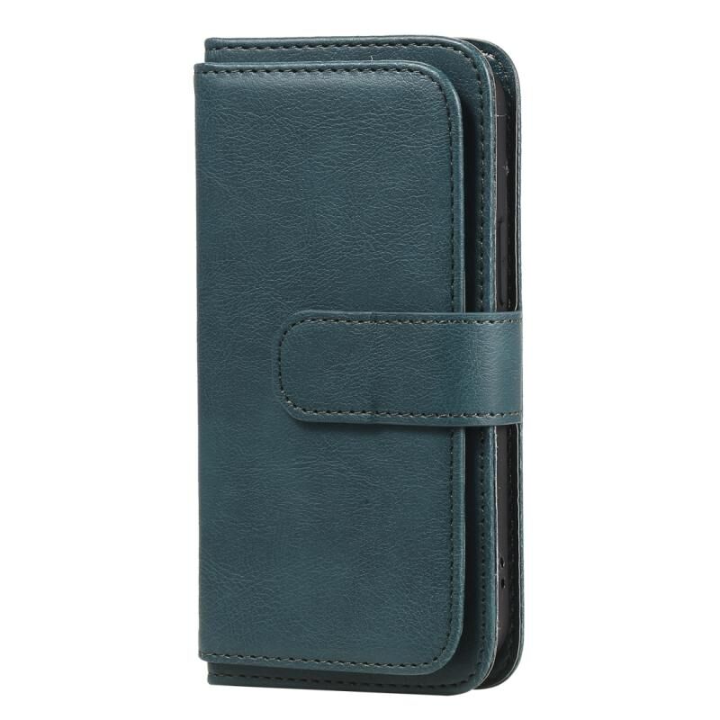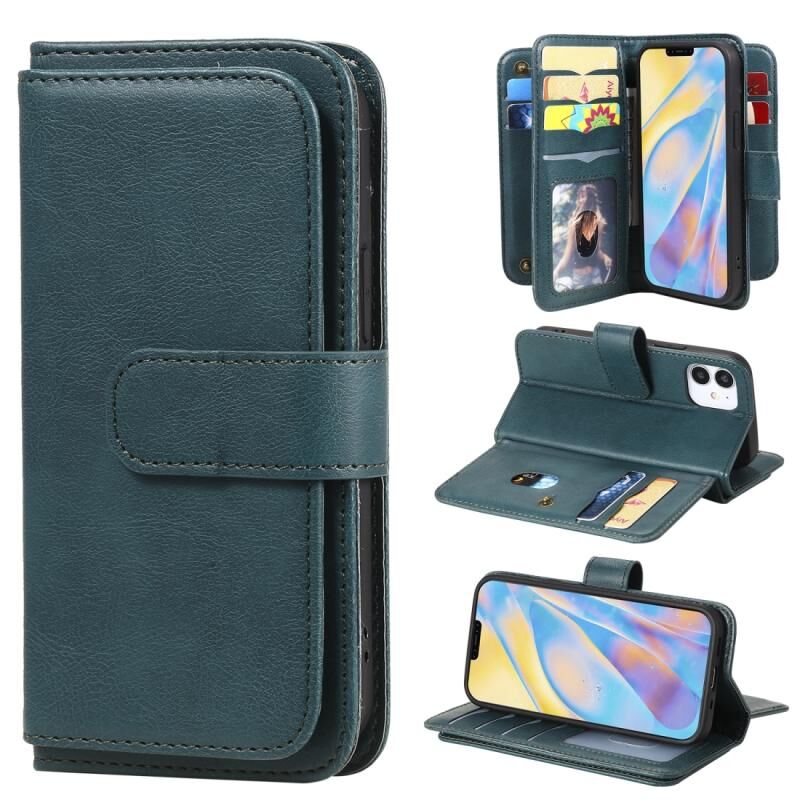Θήκη για iPhone 12 mini, πολυλειτουργική μαγνητική με αγκράφα από χαλκό, οριζόντια, μονόχρωμη, από δέρμα με 10 υποδοχές για κάρτες, πορτοφόλι, βάση & κορνίζα φωτογραφιών (Κρασί)