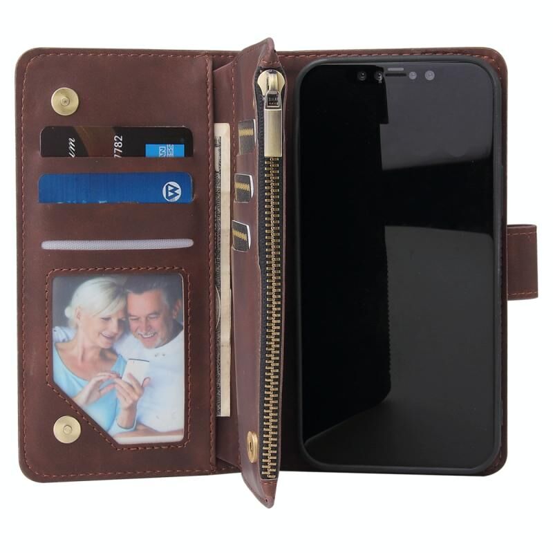 For iPhone 12 mini Multifunctional Retro Frosted Horizontal Flip Leather Case with Card Slot & Holder & Zipper Wallet & Photo Frame & Lanyard(Coffee)