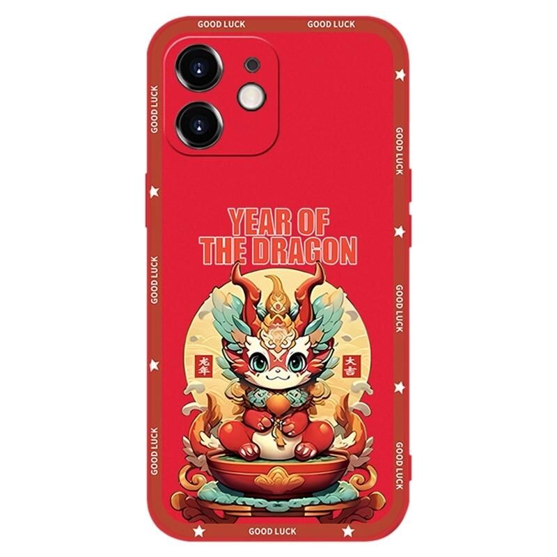 Θήκη σιλικόνης για iPhone 12 mini, κόκκινη, αντικραδασμική, για το Νέο Έτος (Έτος του Δράκου)