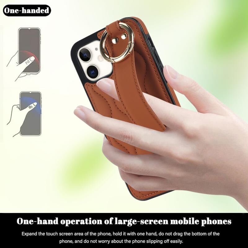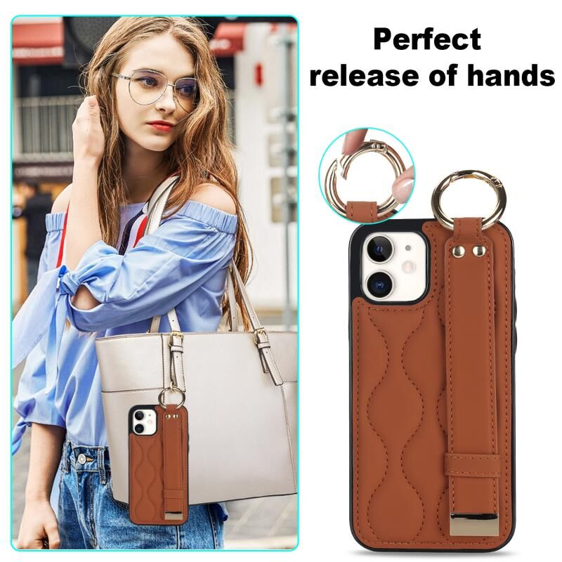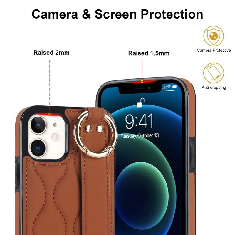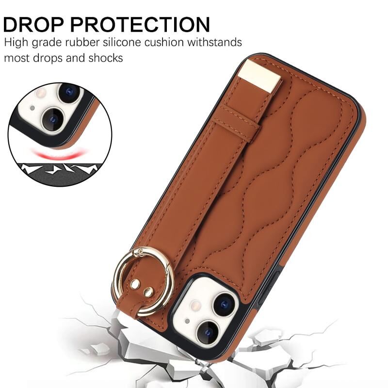 For iPhone 12 mini Non-slip Full Coverage Ring PU Phone Case with Wristband(Brown)