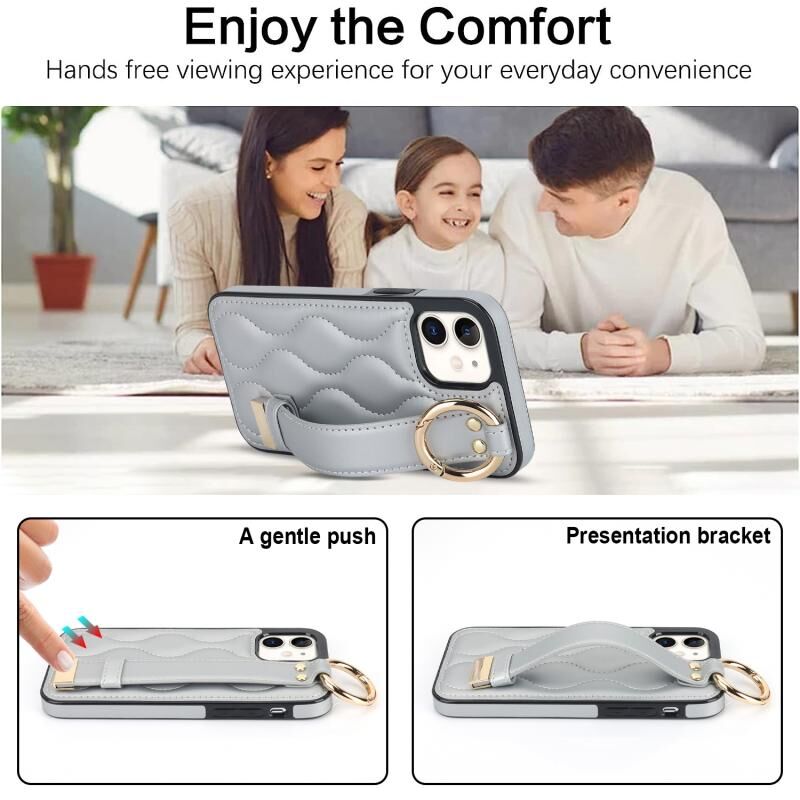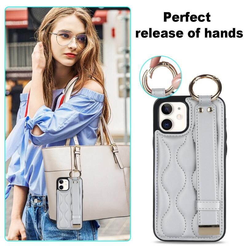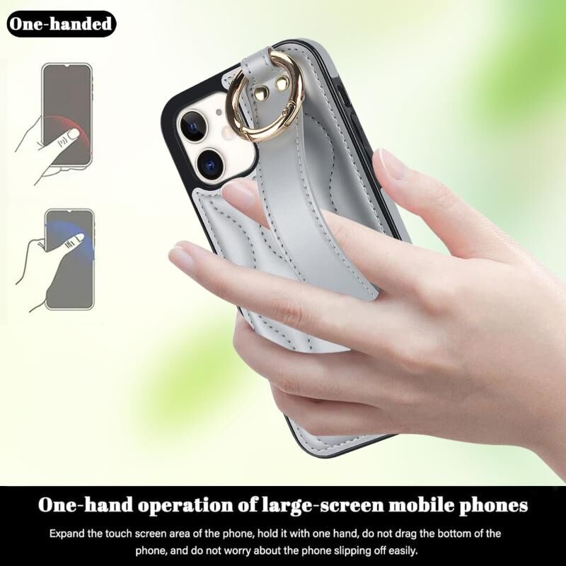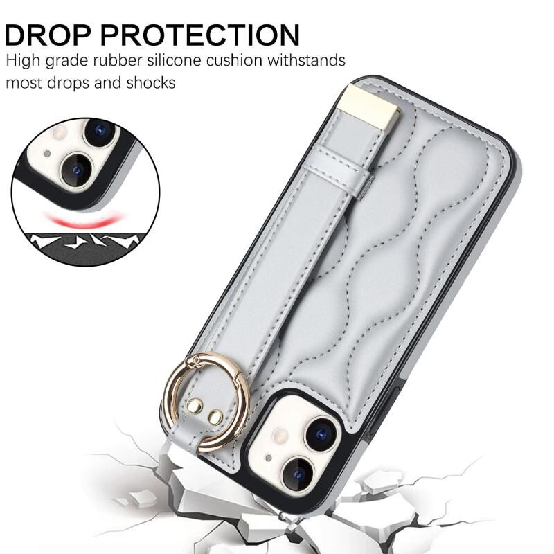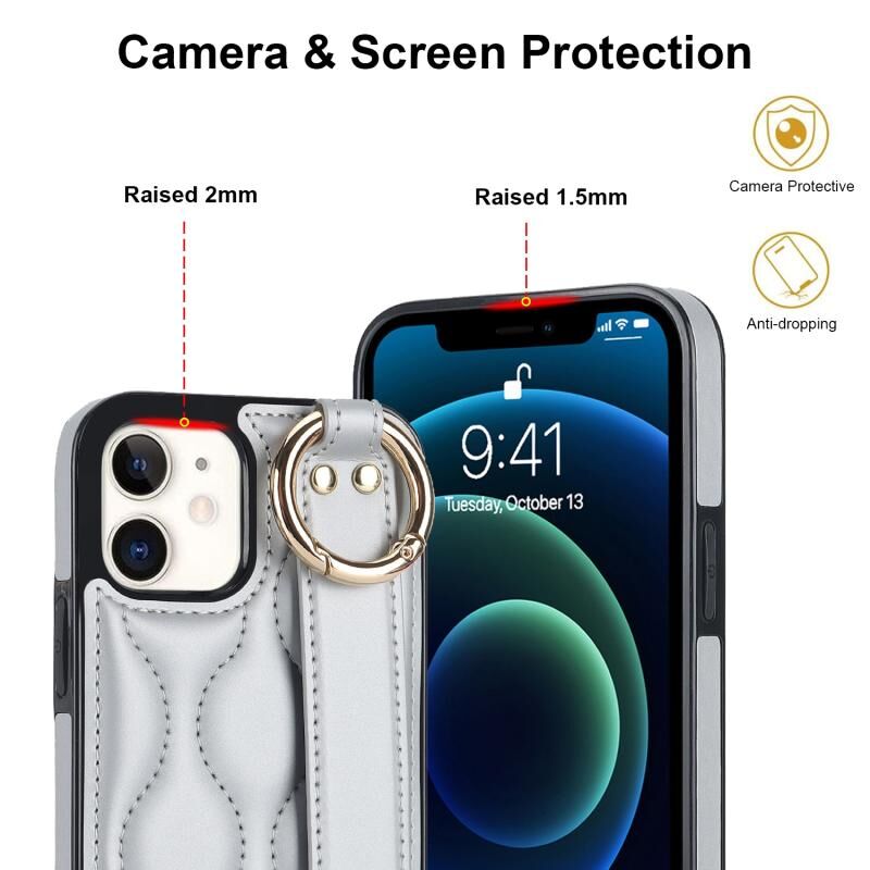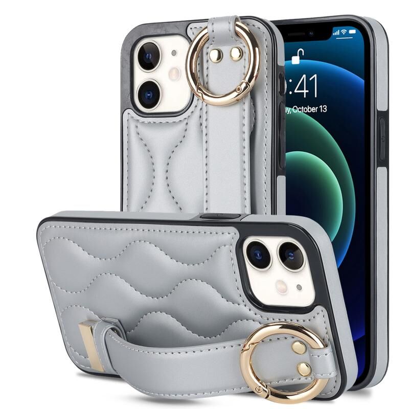 For iPhone 12 mini Non-slip Full Coverage Ring PU Phone Case with Wristband(Silver)