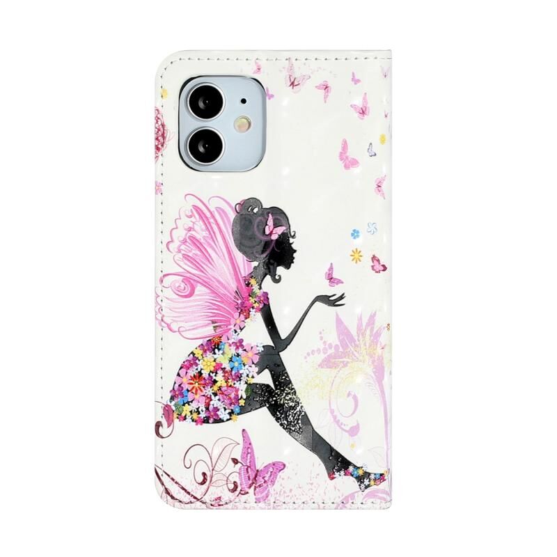 Θήκη τηλεφώνου δερμάτινη με ανάγλυφο σχέδιο λαδιού 3D για iPhone 12 mini (Νεράιδα Λουλουδιών)