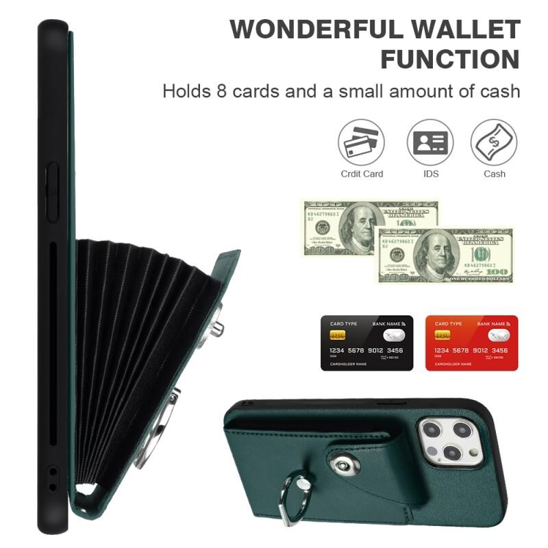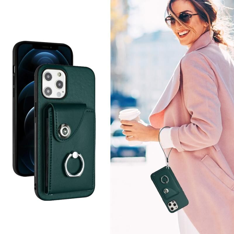 For iPhone 12 mini Organ Card Bag Ring Holder PU Phone Case with Lanyard(Green)
