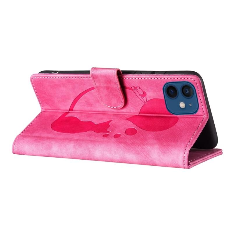 For iPhone 12 mini Pen Heart Cat Embossed Leather Phone Case(Pink)
