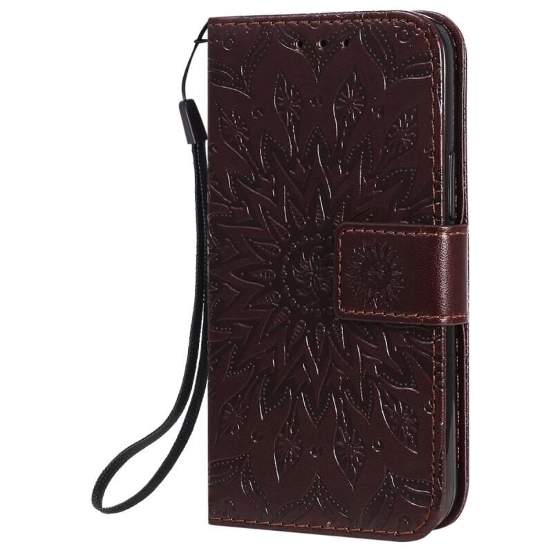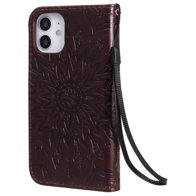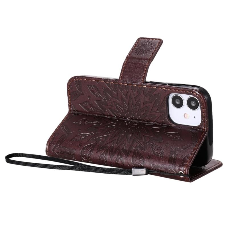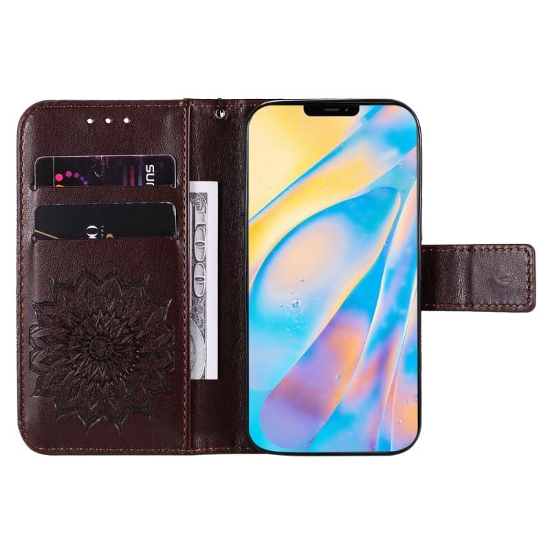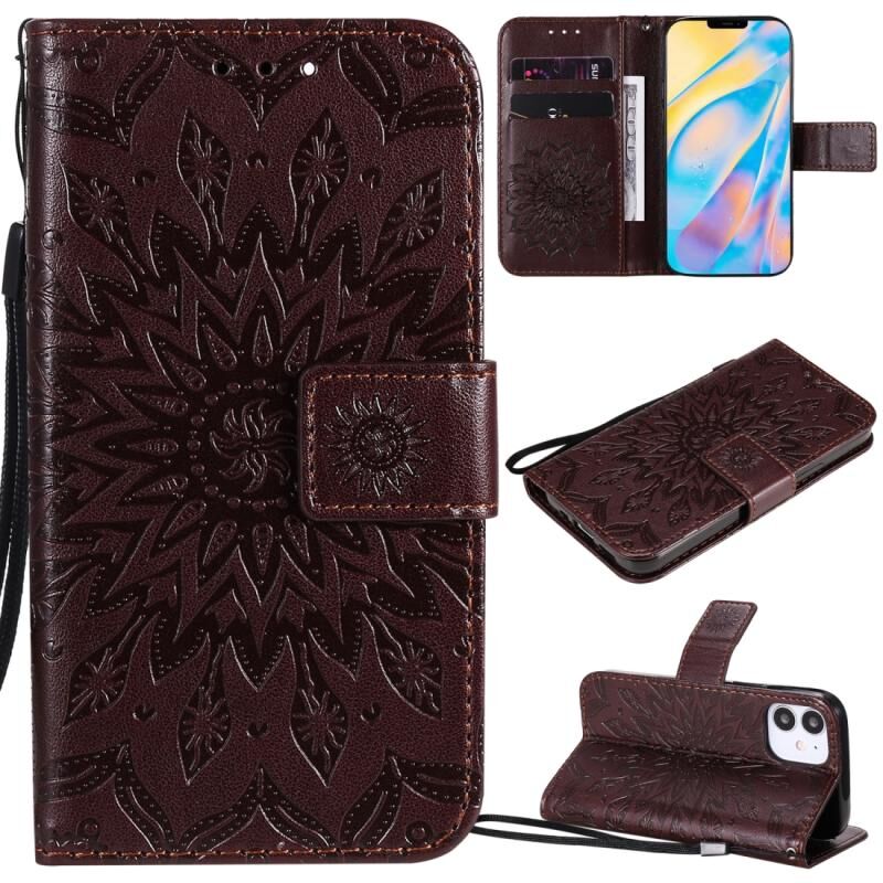 Θήκη για iPhone 12 mini με εκτύπωση Pressed, σχέδιο ηλιοτρόπιο, οριζόντια θήκη από δερματίνη PU με βάση & υποδοχές καρτών & πορτοφόλι & κορδόνι (Μπλε)