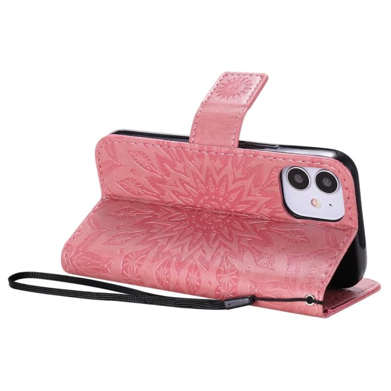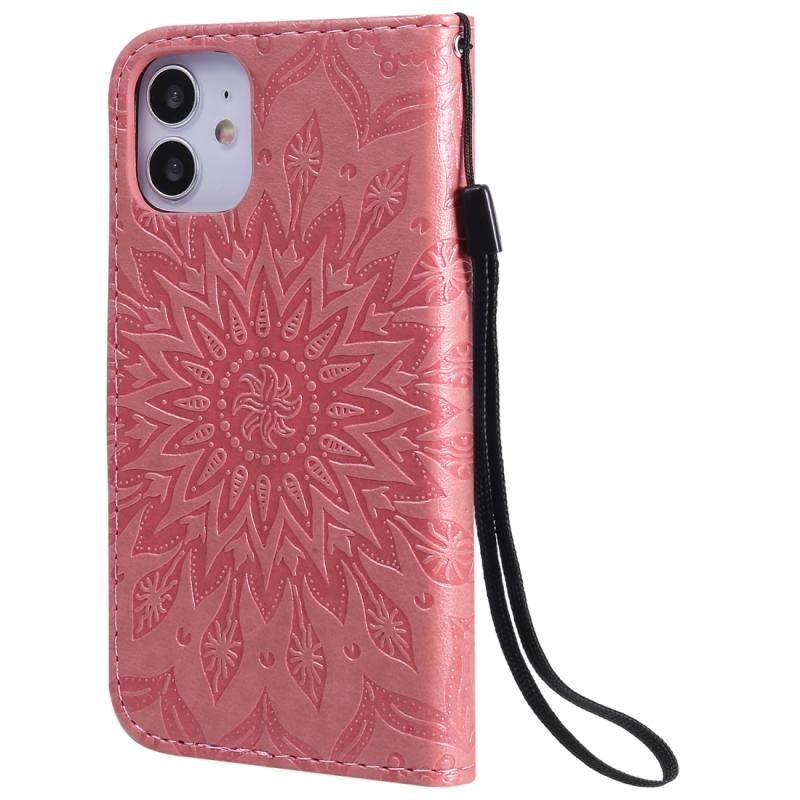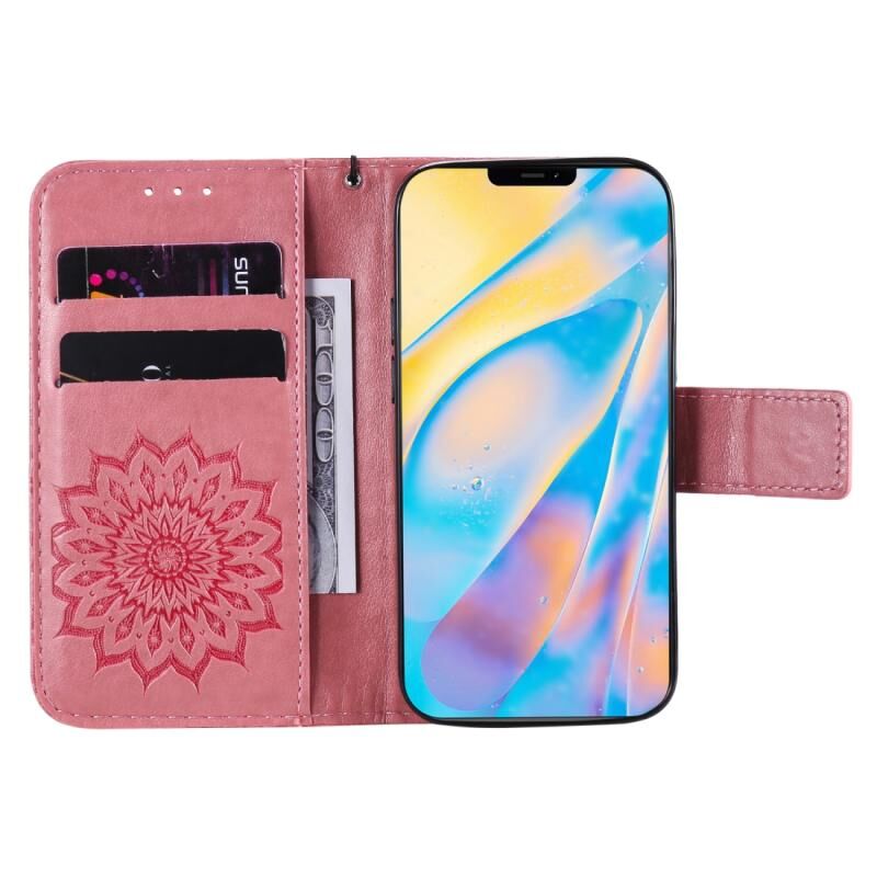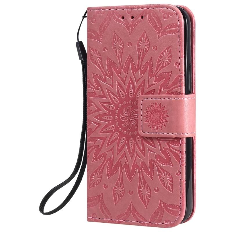 Θήκη για iPhone 12 mini με εκτύπωση Pressed, σχέδιο ηλιοτρόπιο, οριζόντια θήκη από δερματίνη PU με βάση & υποδοχές καρτών & πορτοφόλι & κορδόνι (Μπλε)
