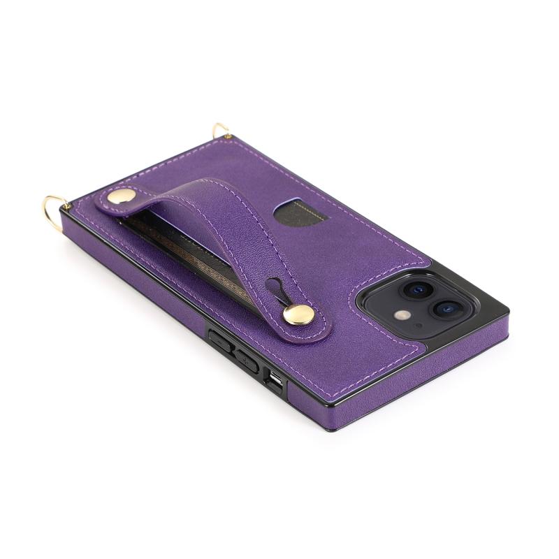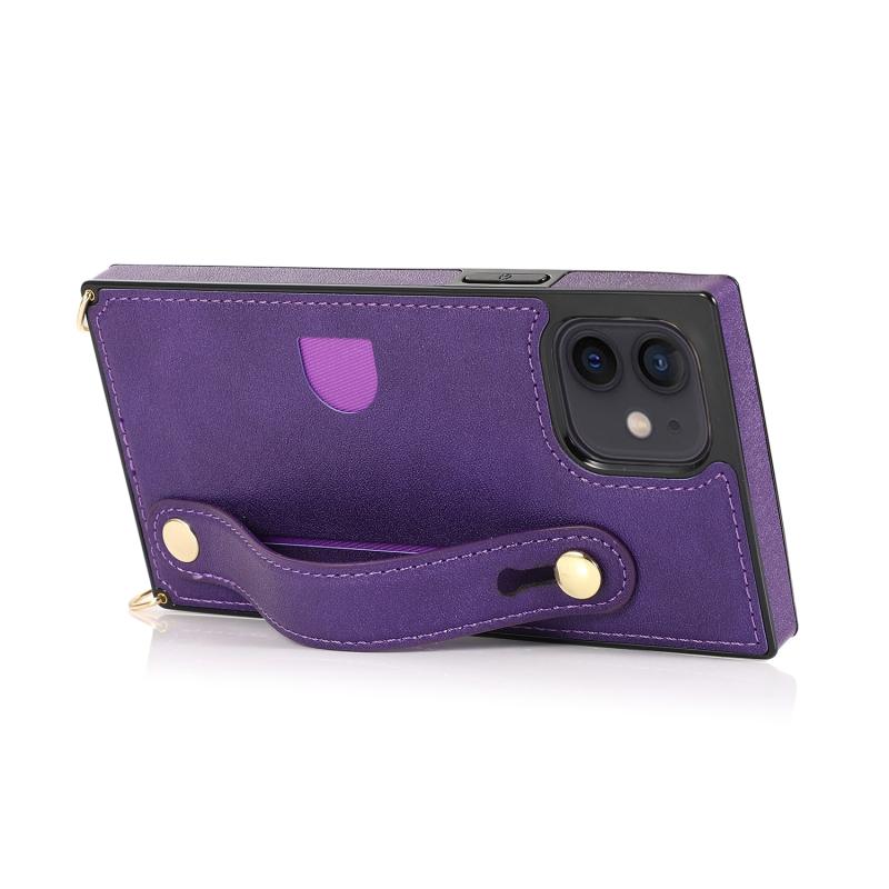 Θήκη προστασίας για iPhone 12 mini από PU+TPU, ανθεκτική σε κρούσεις, με λουρί ώμου, βάση στήριξης, θήκη για κάρτες και λουρί καρπού (Χρυσό Ροζ)