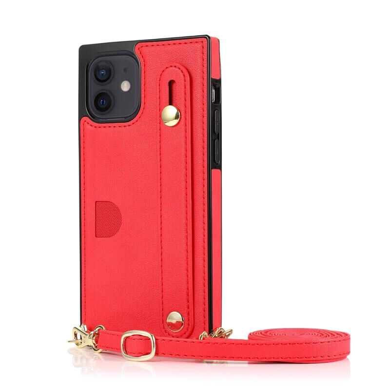 Θήκη προστασίας για iPhone 12 mini από PU+TPU, ανθεκτική σε κρούσεις, με λουρί ώμου, βάση στήριξης, θήκη για κάρτες και λουρί καρπού (Χρυσό Ροζ)