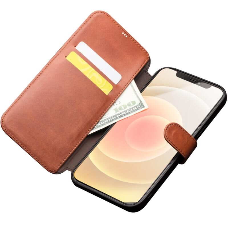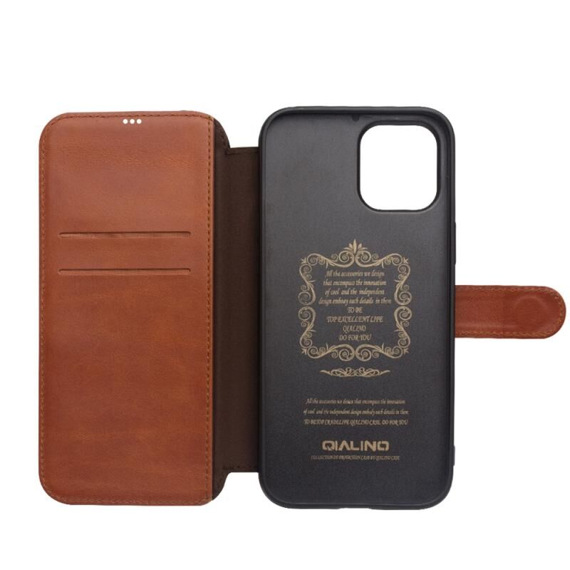 Θήκη QIALINO για iPhone 12 mini, Δερμάτινη οριζόντια θήκη με μαγνητικό κλείσιμο, με θήκες για κάρτες & πορτοφόλι (Ανοιχτό Καφέ) (QIALINO)