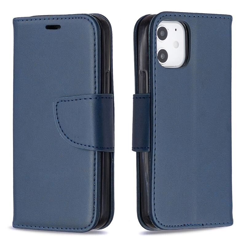 Θήκη για iPhone 12 mini, Retro υφή δέρματος αρνιού, μονόχρωμη, οριζόντια, από δερματίνη PU, με βάση & θήκες καρτών & πορτοφόλι & κορδόνι (Κόκκινο)