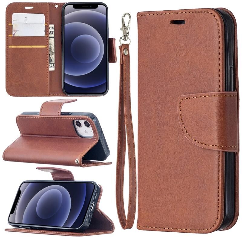 Θήκη για iPhone 12 mini, Retro από Δέρμα Αμνού, Μονόχρωμη, Οριζόντια, από Δερματίνη PU, με Θήκη, Θήκες Καρτών, Πορτοφόλι & Λουρί (Καφέ)