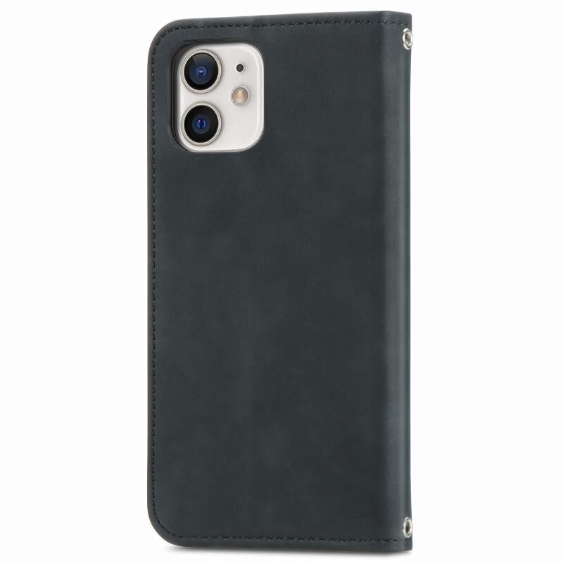 Θήκη για iPhone 12 mini με υφή retro, μαγνητικό κλείσιμο, οριζόντια, δερμάτινη με βάση, θήκες για κάρτες, πορτοφόλι & κορνίζα φωτογραφιών (Μαύρο)
