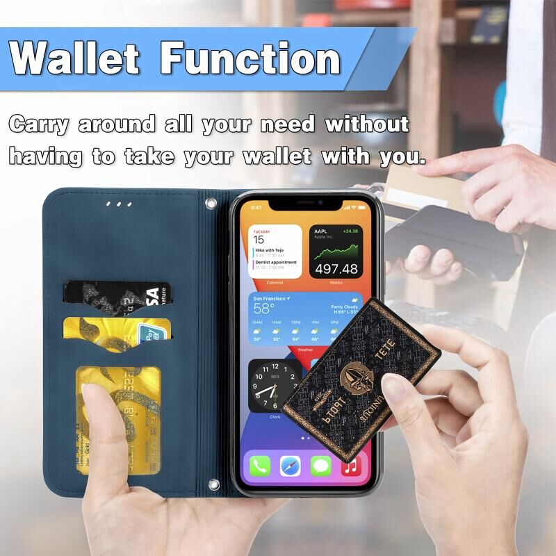 Θήκη για iPhone 12 mini με υφή retro, μαγνητικό κλείσιμο, οριζόντια, δερμάτινη με βάση, θήκες για κάρτες, πορτοφόλι & κορνίζα φωτογραφιών (Μαύρο)