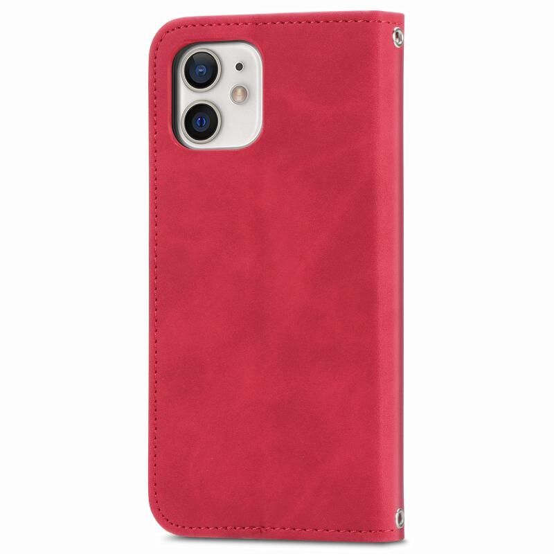 Θήκη για iPhone 12 mini με υφή retro, μαγνητικό κλείσιμο, οριζόντια, δερμάτινη με βάση, θήκες για κάρτες, πορτοφόλι & κορνίζα φωτογραφιών (Μαύρο)
