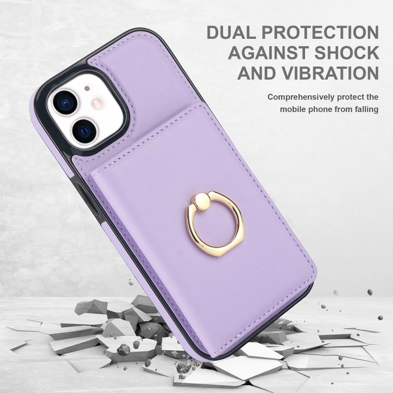 For iPhone 12 mini RFID Anti-theft Card Ring Holder Phone Case(Purple)
