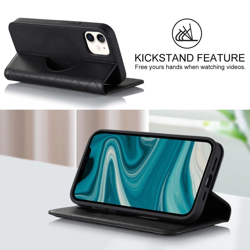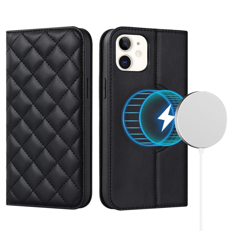 For iPhone 12 mini Rhombic MagSafe RFID Anti-Theft Wallet Leather Phone Case(Black)