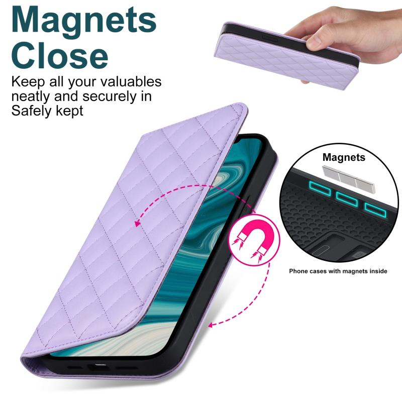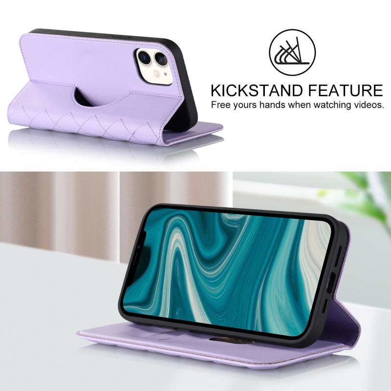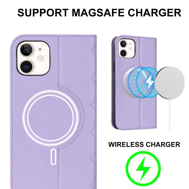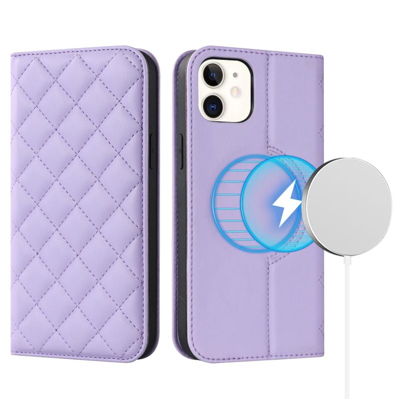 For iPhone 12 mini Rhombic MagSafe RFID Anti-Theft Wallet Leather Phone Case(Purple)