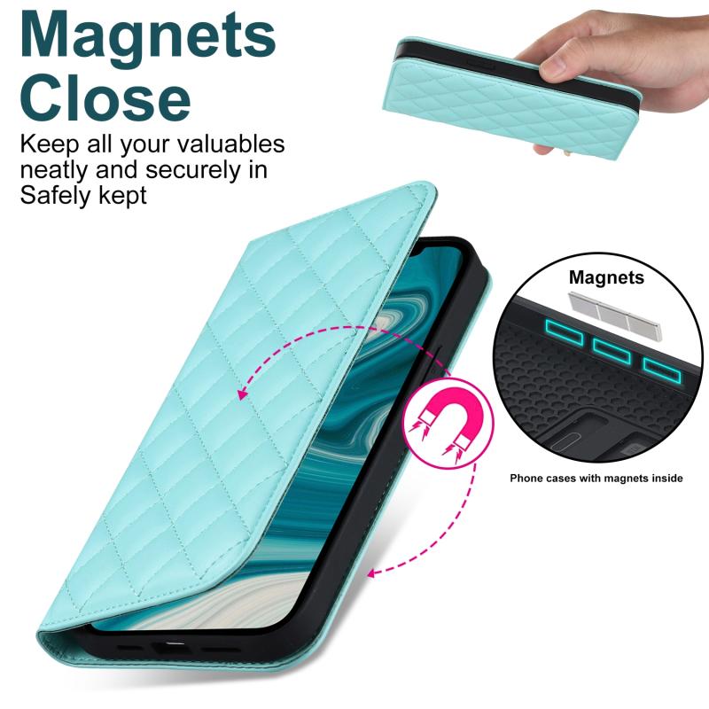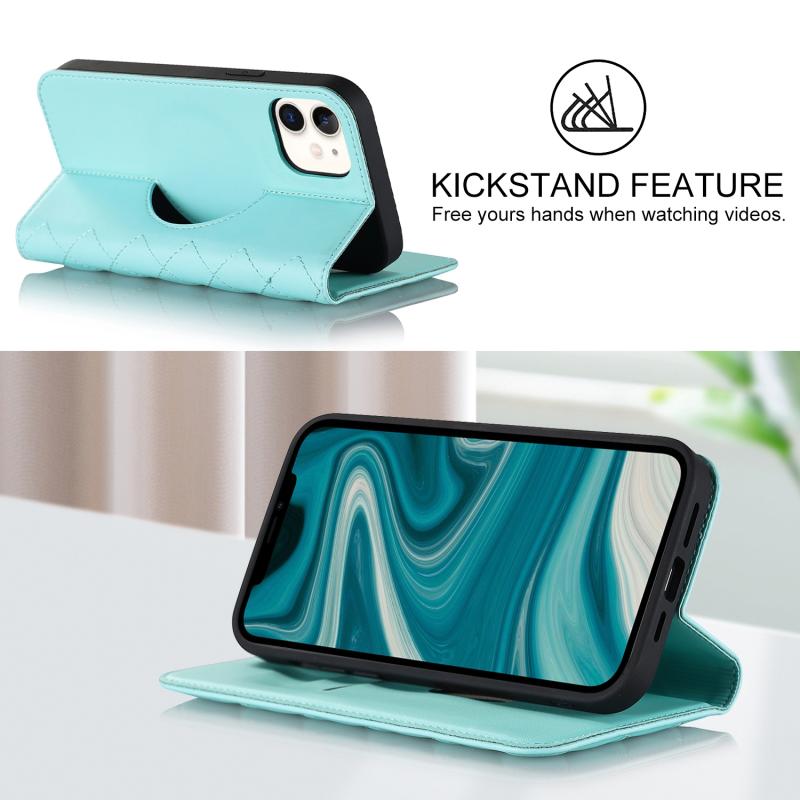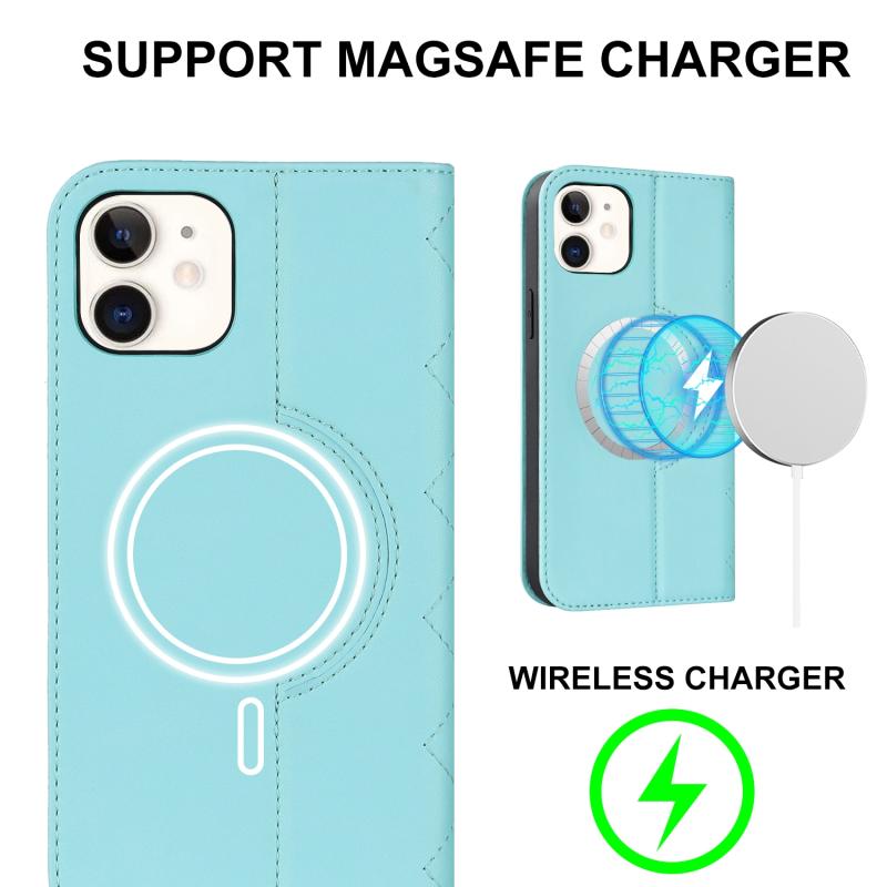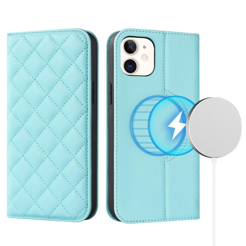 For iPhone 12 mini Rhombic MagSafe RFID Anti-Theft Wallet Leather Phone Case(Sky Blue)