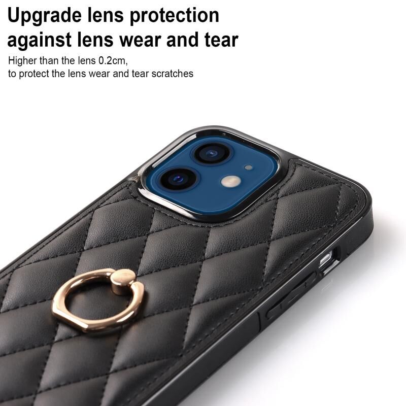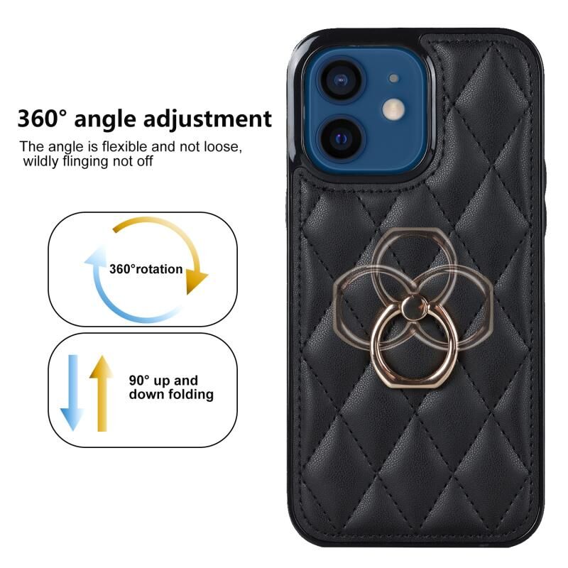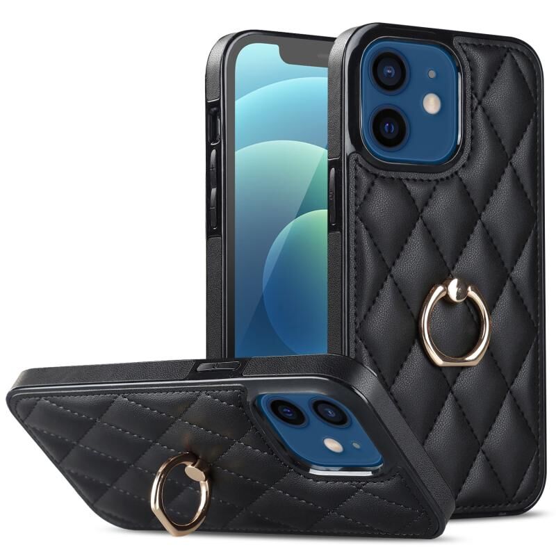 For iPhone 12 mini Rhombic PU Leather Phone Case with Ring Holder(Black)