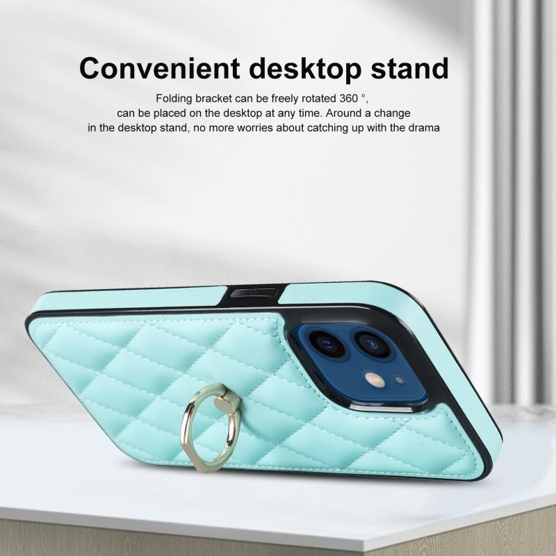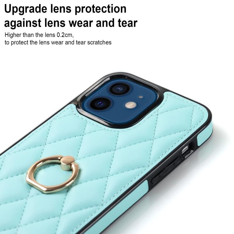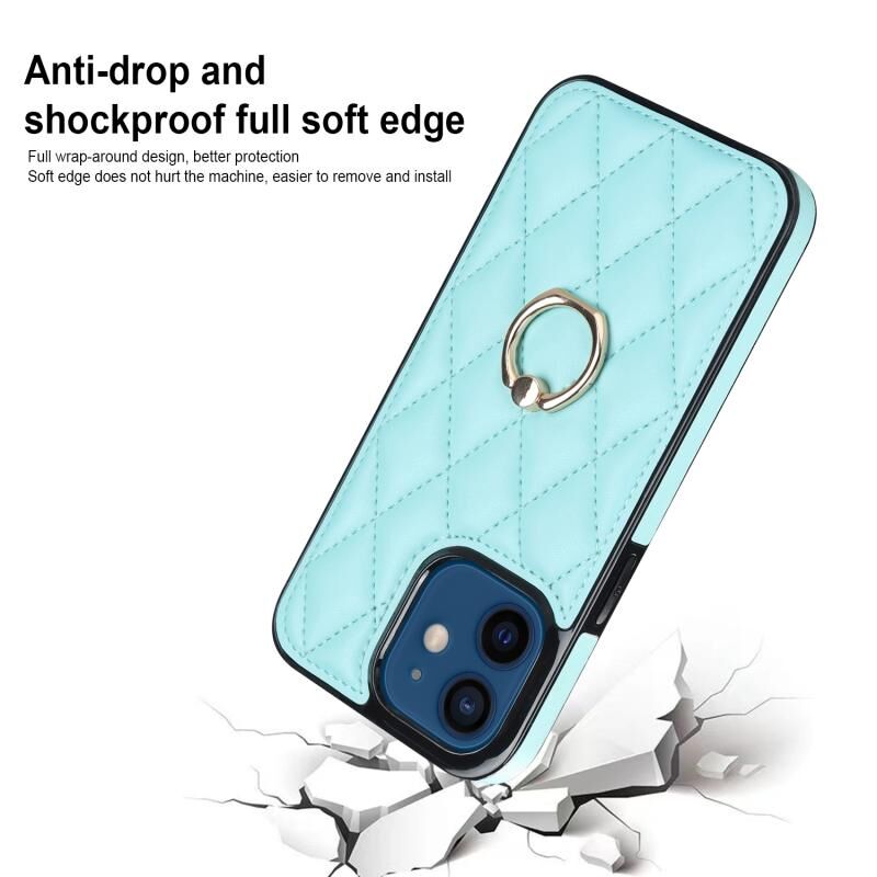 For iPhone 12 mini Rhombic PU Leather Phone Case with Ring Holder(Blue)
