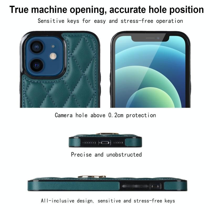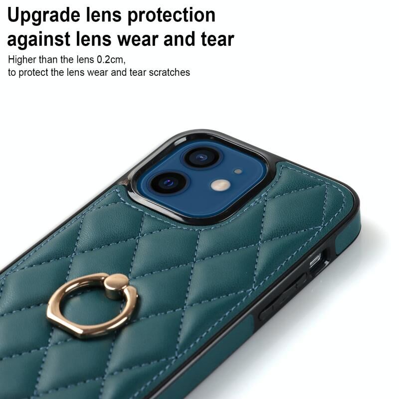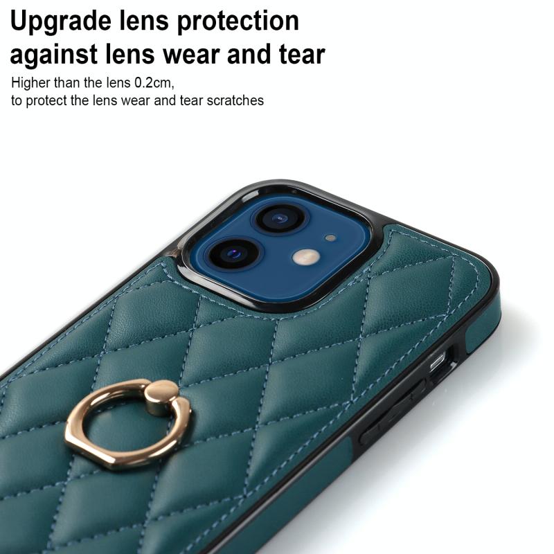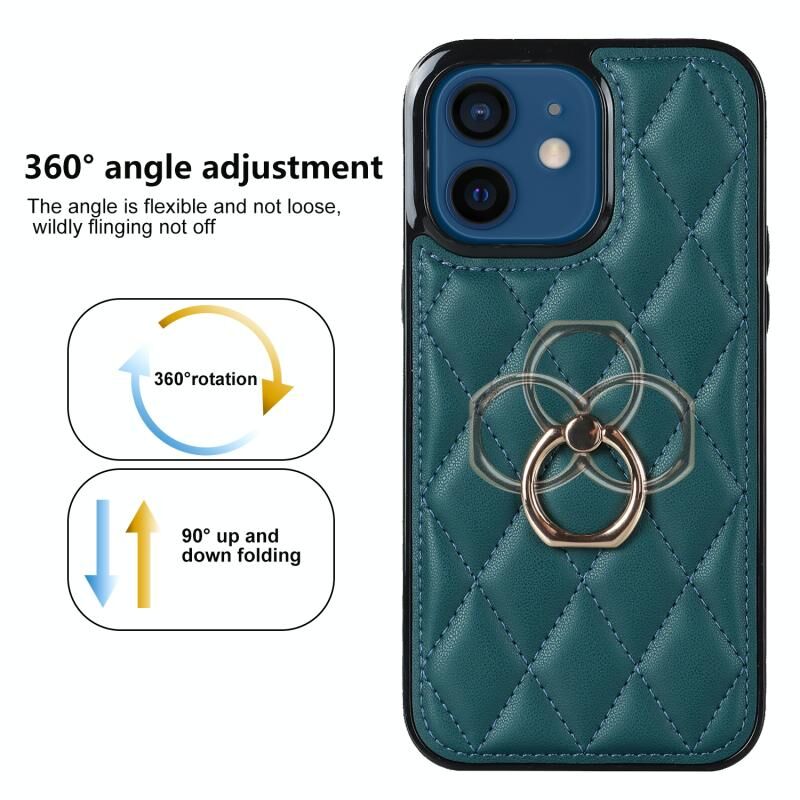 For iPhone 12 mini Rhombic PU Leather Phone Case with Ring Holder(Green)
