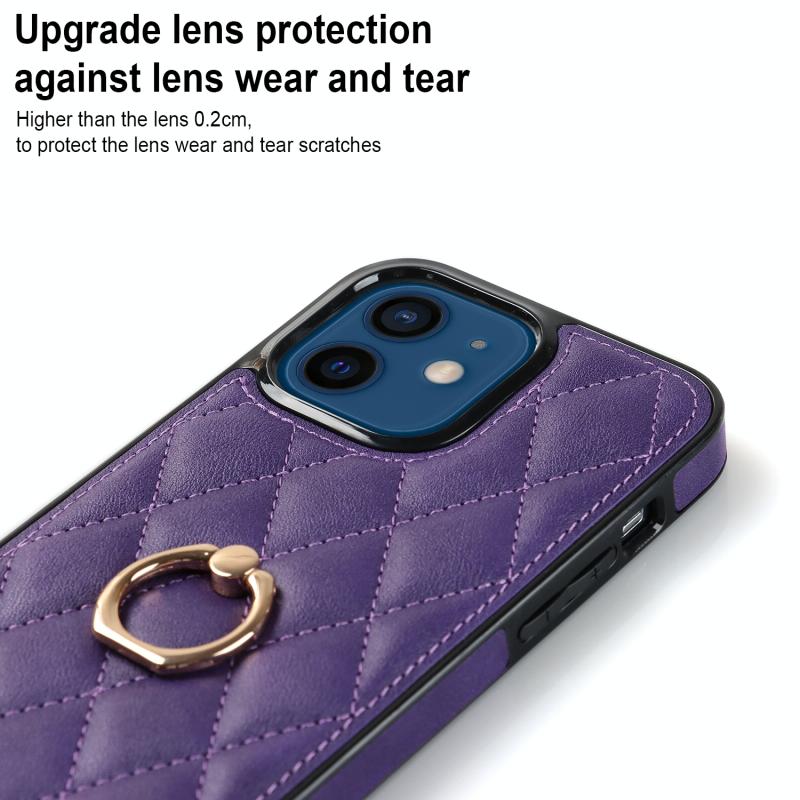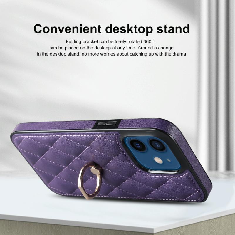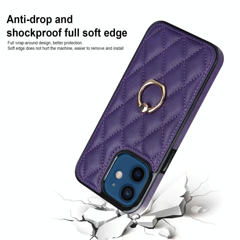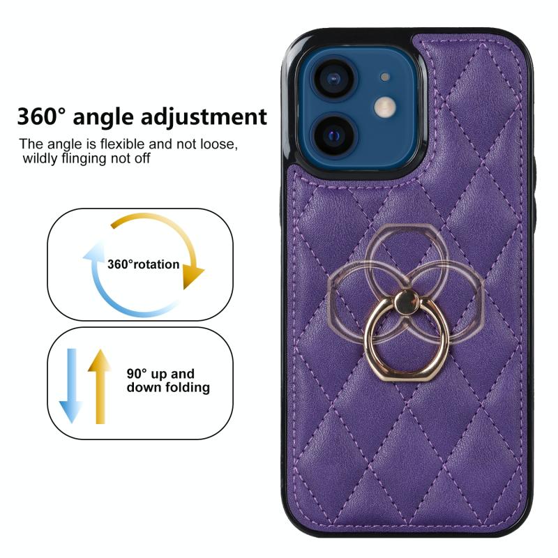 For iPhone 12 mini Rhombic PU Leather Phone Case with Ring Holder(Purple)