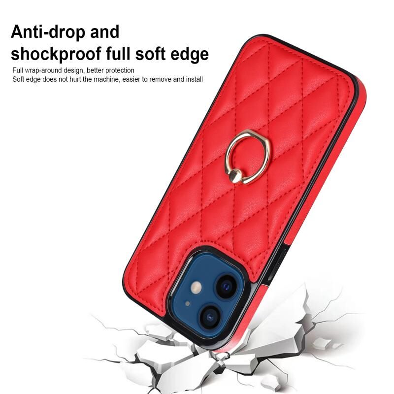For iPhone 12 mini Rhombic PU Leather Phone Case with Ring Holder(Red)